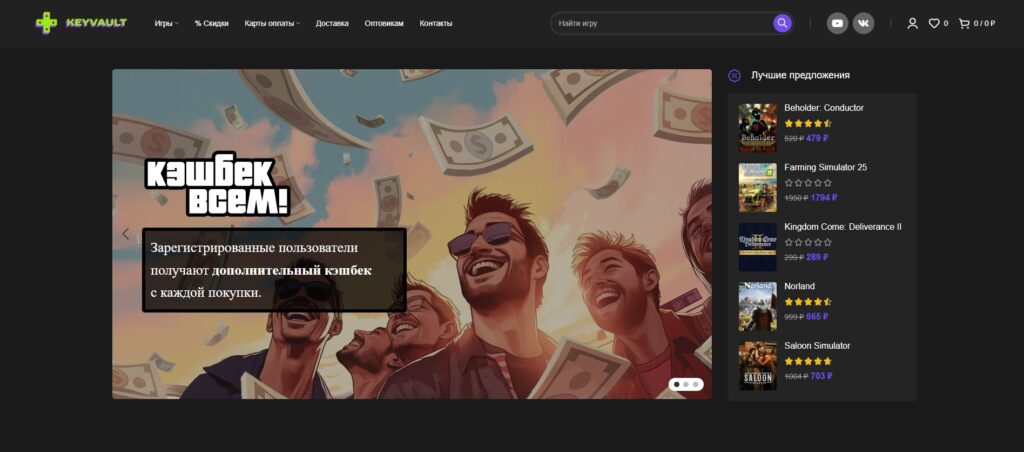 Слушайте, я в цифровых магазинах как рыба в воде. У меня аккаунты на десятках площадок, библиотека в Steam давно перевалила за тысячу игр, и, кажется, я уже видел всё. Epic Games Store раздаёт халяву, Origin и Uplay (тьфу, Ubisoft Connect) живут своей жизнью, а Microsoft Store вообще отдельная вселенная. Но есть особая каста — магазины ключей. Это наша, геймерская «чёрная пятница», которая никогда не заканчивается. И недавно я наткнулся на магазин, который вызвал у меня чувство, будто я снова зеленый новичок, заходящий в Steam в далёком 2008-м. Это KeyVault.ru.